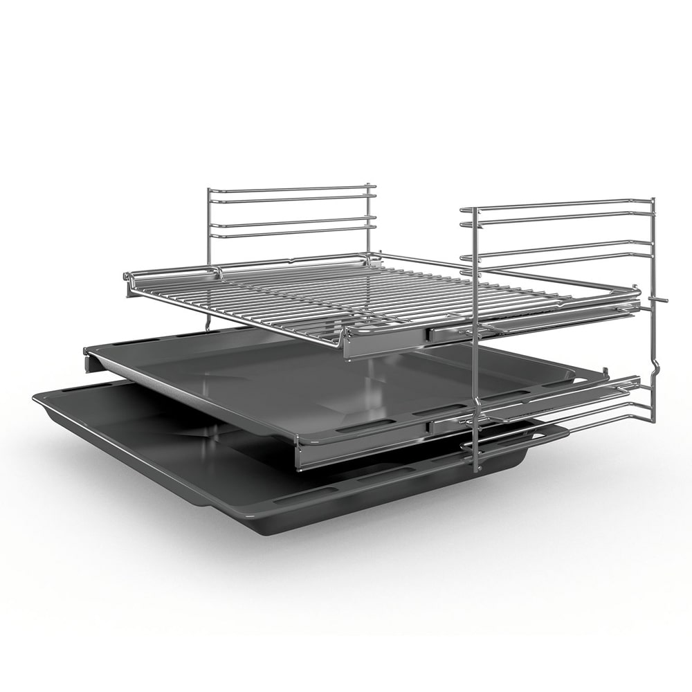 فر توکار بوش HBJ558YB0Q دارای ظرفیت ۶۶ لیتر است که برای خانوادههای متوسط تا پرجمعیت کاملاً مناسب است. با این حجم، شما میتوانید همزمان چندین سینی غذا یا شیرینی را بپزید بدون اینکه نگران کمبود فضا باشید. فضای داخلی فر از جنس لعاب با کیفیت و مقاوم در برابر حرارت است که تمیز کردن آن را نیز آسانتر میکند.