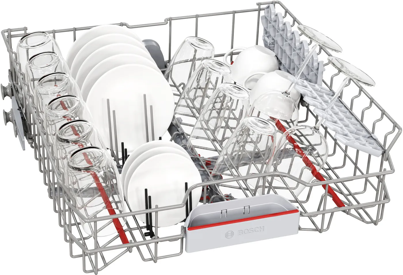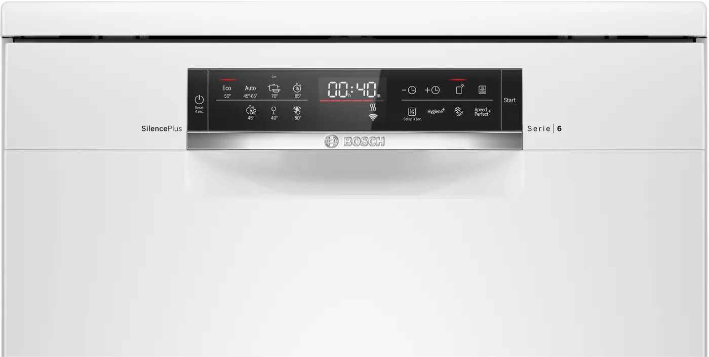 ظرفشویی بوش SMS6HMW76Q یک دستگاه خانگی با کارایی بالا با طراحی زیبا است که از فناوری های پیشرفته برای شستن و خشک کردن ظروف به راحتی و با حداقل منابع استفاده می کند. این ظرفشویی ۱۴ نفر ظرفیت دارد و برای خانواده های پرجمعیت و یا کسانی که معمولا مهمان دارند مناسب است. ماشین ظرفشویی بوش مدل SMS6HMW76Q یکی از سری ۶ محصولات بوش است که جزو ماشین ظرفشویی های بوش ترکیه محسوب می شود. مصرف انرژی این دستگاه در محدوده A++ می باشد و جزو دستگاه های برقی کم مصرف به حساب می آید. همچنین به دلیل استفاده از موتور قدرتمند و بی صدا Eco Silence Drive، قدرت شستشوی ظروف بالا، صدای تولید شده در هنگام شستشو کم و مصرف آب و انرژی آن در کمترین حد است. در ادامه این مقاله می توانید با برنامه های شستشو و دیگر ویژگی های خاص این دستگاه آشنا شوید. ماشین ظرفشویی بوش SMS6HMW76Q یک ماشین ۱۴ نفره با کارایی بالا و طراحی زیبا می باشد که دارای ۷ برنامه شستشوی اصلی و ۶ آپشن ویژه می باشد که با توجه به نوع و میزان آلودگی ظروف می توانید از آنها استفاده نمایید. این برنامه ها عبارتند از: برخی از مهمترین برنامه های شستشوی اساسی برنامه شستشوی خودکار: این برنامه با استفاده از سنسورهای حساس میزان آلودگی ظروف را تشخیص داده و به صورت خودکار دما، میزان آب و زمان شستشو را تعیین می کند. این برنامه برای شستشوی روزانه ظروف مناسب است. برنامه شستشوی اکو: برنامه ای برای شستشوی اقتصادی ظروف است به این صورت که با افزایش زمان شستشو و کاهش دما، ظروف شما را با حداقل مصرف آب و انرژی شستشو می دهد. اگر می خواهید هر روز از دستگاه استفاده کنید، این گزینه به شما کمک می کند تا ظروف کثیف روزانه خود را به طور بهینه بشویید. برنامه شستشوی فشرده: این برنامه با استفاده از دمای بالاتر و فشار آب قوی تر، لکه های سخت و چسبنده را به راحتی از بین می برد. این برنامه برای شستن ظروف بسیار چرب مناسب است. برنامه شستشوی نیمه بار: این برنامه برای شستن تنها یک سبد (بالا یا پایین) آب و انرژی کمتری مصرف می کند. این برنامه برای مواقعی مناسب است که تعداد ظروف کم است و نمی خواهید منتظر پر شدن دستگاه باشید. برنامه شستشوی ماشین ظرفشویی: این برنامه با استفاده از دمای بالا و یک ماده تمیز کننده مخصوص، فضای داخلی ماشین ظرفشویی را تمیز می کند. این برنامه برای حفظ عملکرد بهینه و جلوگیری از رسوب و بوهای نامطبوع مناسب است. برنامه شستشوی Extra Dry: این برنامه با استفاده از حرارت بالاتر در مرحله خشک کن ظروف را کاملا خشک می کند. این برنامه برای ظروف پلاستیکی یا چوبی که به طور معمول خشک نمی شوند بسیار مناسب است.